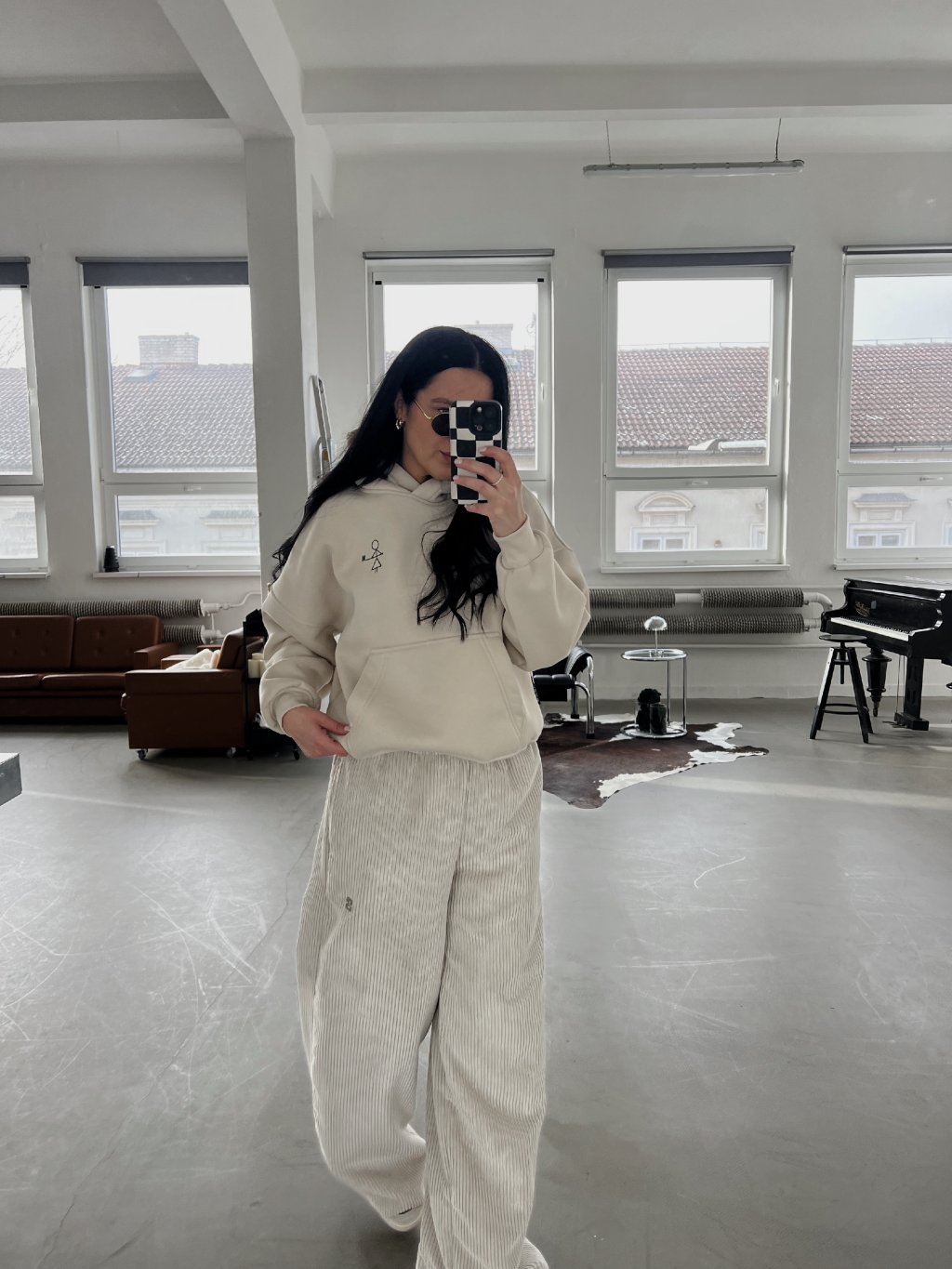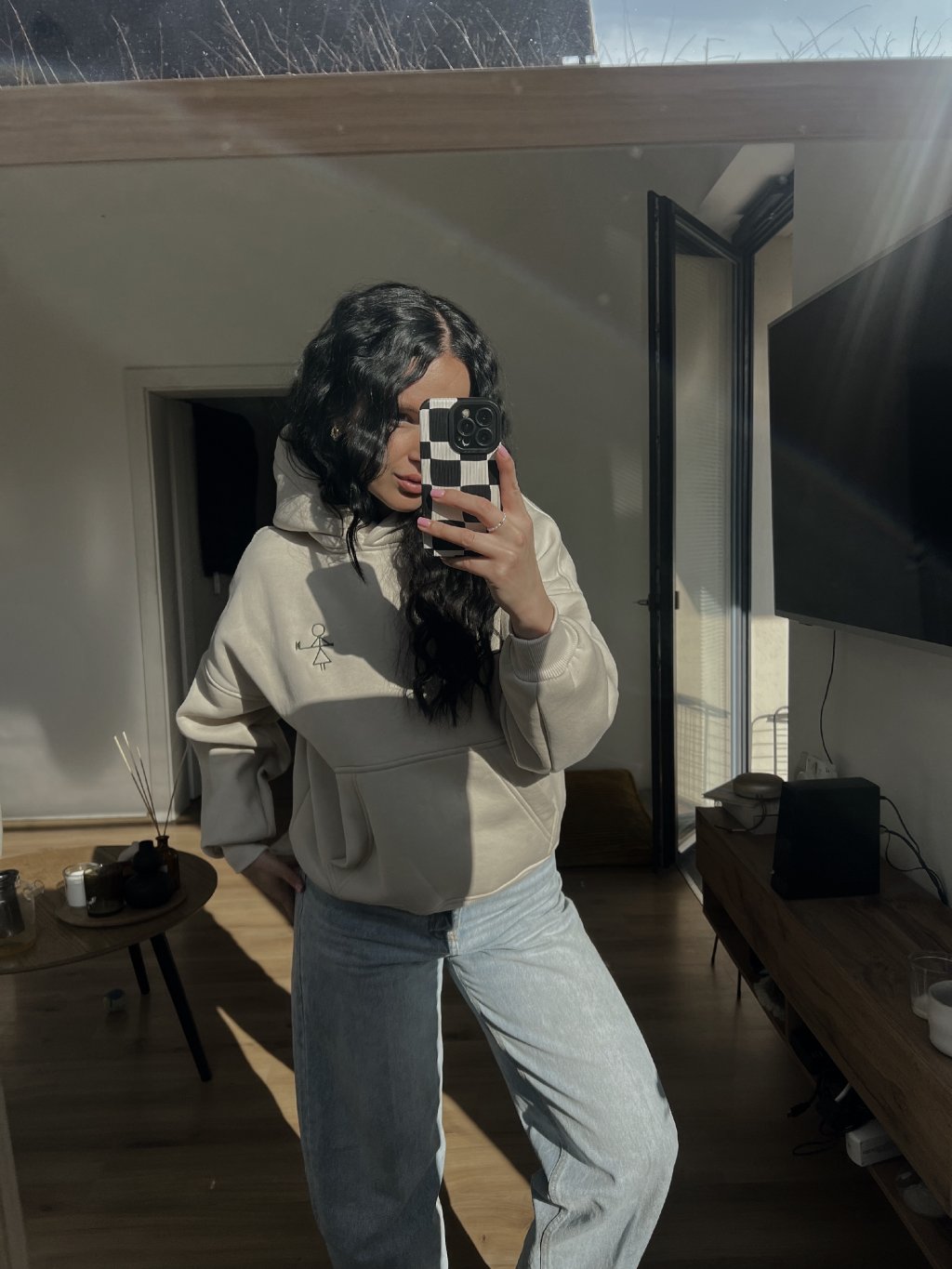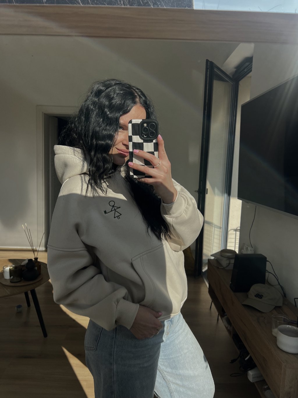 Mikina v over střihu – volnější, pohodlný fit s moderním minimalistickým lookem.