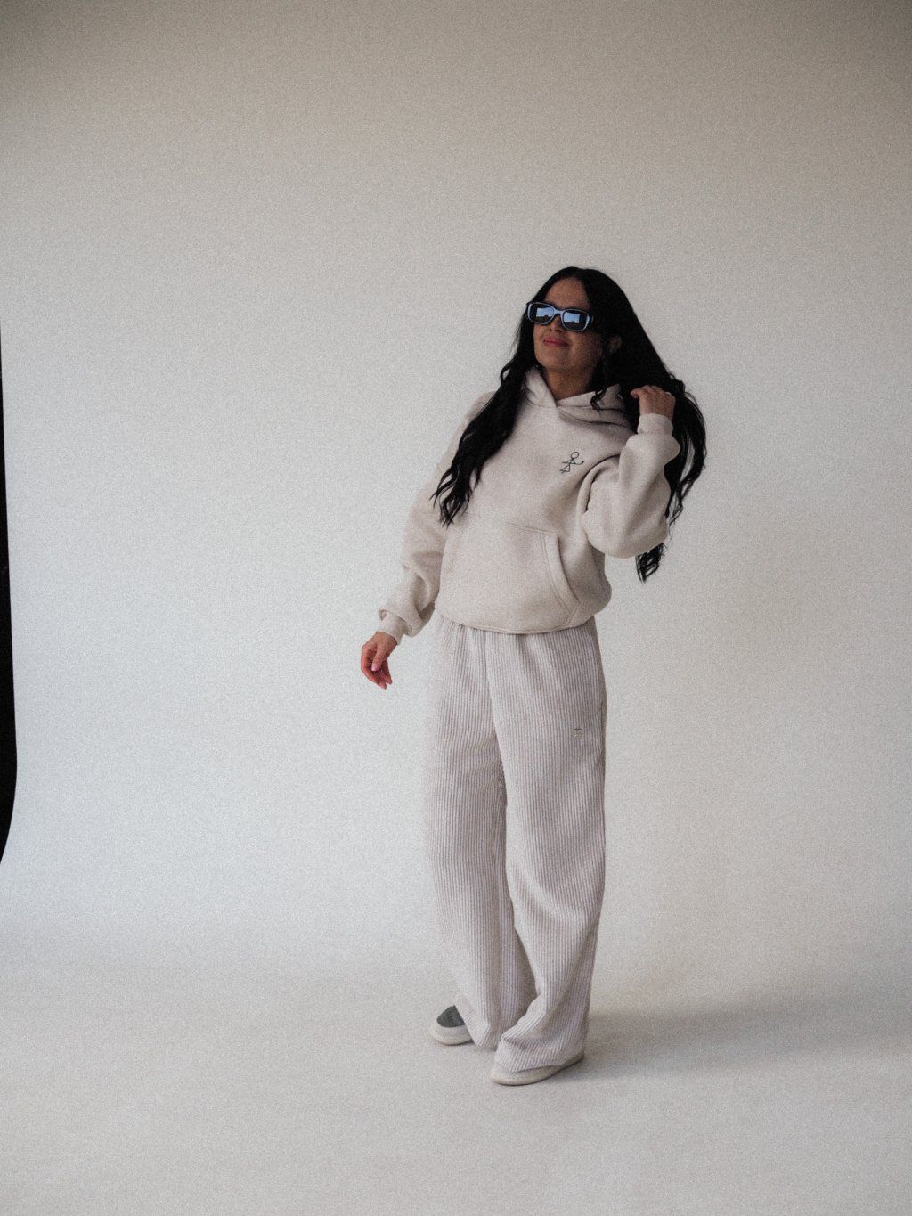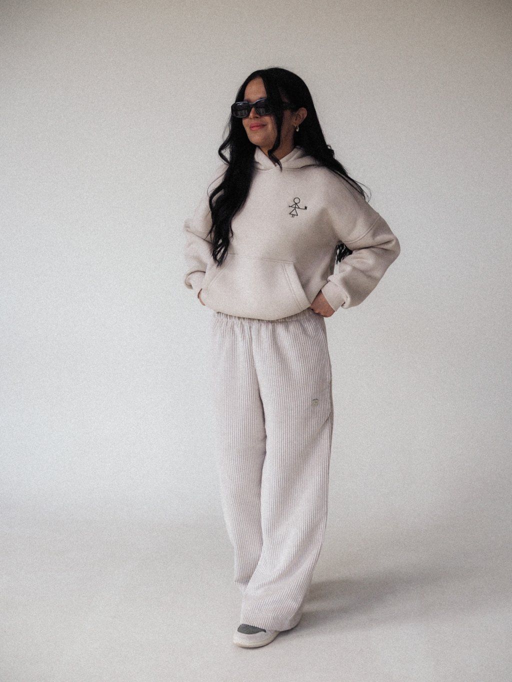 Mikina v over střihu – volnější, pohodlný fit s moderním minimalistickým lookem.
