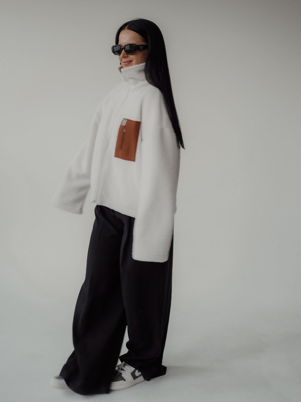 Detail: kapsa na zip z žebrovaného materiálu – praktická a zároveň stylová